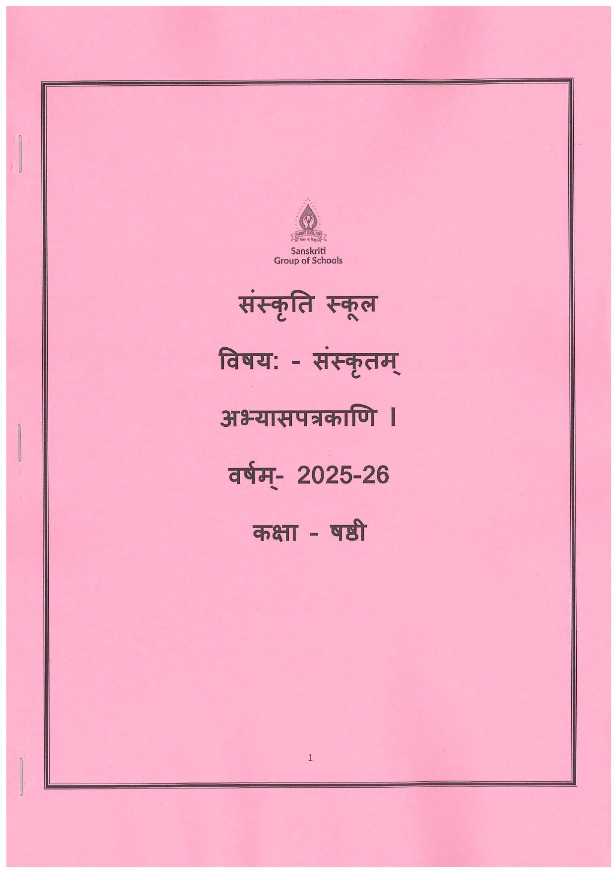 SS WORKSHEET CLASS 6 SANSKRIT 2025-2026